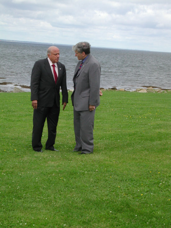 Pugwash President M.S. Swaminathan and Sen. Romeo Dallaire on the lawn at Thinker's Lodge