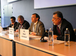 Presentations from (R-L) Amb. Wa’el al-Assad, Hon. Espen Barth-Eide, Dr Goetz Neuneck, Amb. Reza Ziaran