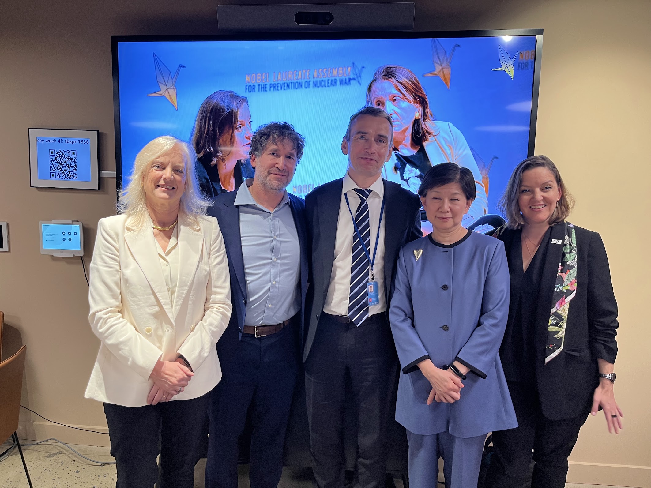 On 8 October the Secretary General then travelled to New York City for a special event to present the Nobel Laureate Declaration for the Prevention of Nuclear War, hosted by the Norwegian Permanent Mission to the UN. Following on from the July 2025 Assembly – which had produced and endorsed a list of actionable recommendations for preventing nuclear war aimed at leaders and policy makers around the world – this event challenged participants to think how states can collectively drive meaningful change at a time of unprecedented risk of nuclear conflagration. More than 70 people joined the discussion featuring Hans Christian Hveem Kjølseth (Deputy Director for Disarmament and Non-Proliferation at the Norwegian Ministry of Foreign Affairs), High Representative Izumi Nakamitsu (United Nations Office for Disarmament Affairs), Prof. Daniel Holz (University of Chicago Departments of Physics, Astronomy & Astrophysics), Alex Bell (President and CEO of the Bulletin of the Atomic Scientists) and Prof. Karen Hallberg (Pugwash).